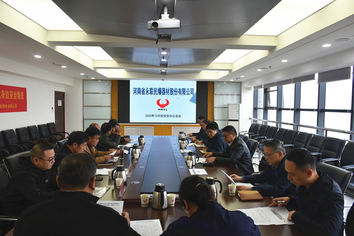 2025年10月31日,河南省永聯民爆器材股份有限公司召開了10月份安全辦公會議。公司安委會成員、安委會辦公室成員以及輝縣、新縣、郟縣、新安縣、義馬市、信陽等6家分公司負責人參加了會議。董事長劉嵩、總經理靳義國參加會議并講話。